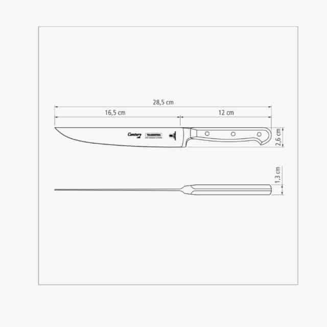 سكاكين Century Line هي سكاكين مطروقة كاملة النصل (قطعة واحدة) مصنوعة من الفولاذ المقاوم للصدأ عالي الكربون DIN 1.410، وتخضع لمعالجة حرارية تشمل التصلب (تسخين الشفرة)، والتبريد من 50 إلى -196 درجة مئوية، والتصلب (زيادة مرونة الفولاذ) لعمر أطول وأكثر كفاءة. المقبض التشريحي والمريح مصنوع من البولي كربونات المقوى بالألياف الزجاجية، مما يوفر الأمان أثناء الاستخدام وعمرًا طويلاً بفضل مساميره المصنوعة من الألومنيوم. سكاكين Century Line معتمدة من NSF (المؤسسة الوطنية للصحة)، ومصنفة بـ 58 HRC، وصلابة روكويل.