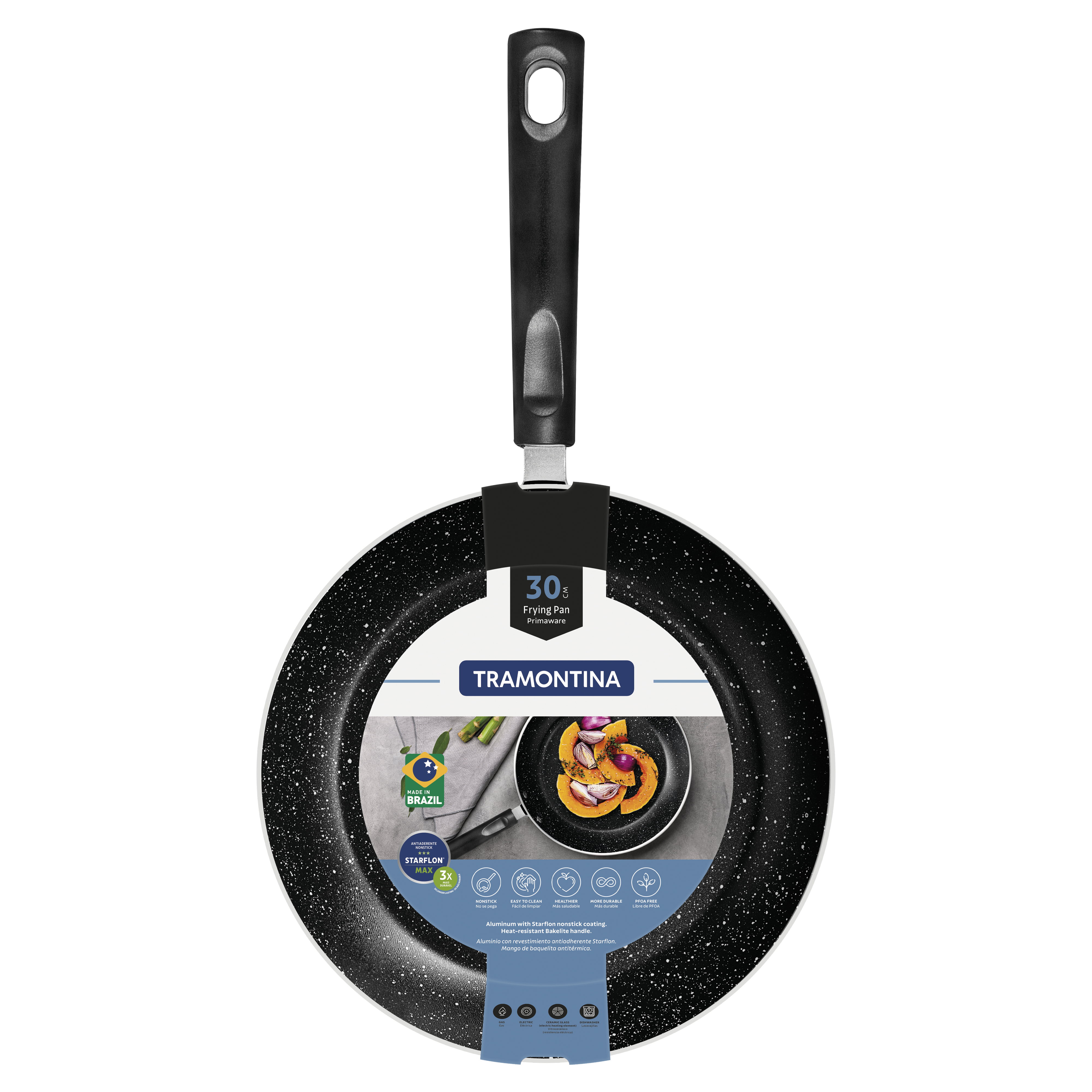 The frying pan is an indispensable item in any kitchen. That's why you need to have the Tramontina aluminum frying pan with interior and exterior Starflon Max nonstick coating and bakelite handle 30 centimeters in diameter 2,5-liter capacity blue. Perfect for preparing different types of recipes, it is made of aluminum with Starflon Max nonstick coating with a thickness that provides quick and uniform cooking of food, greater durability and is not harmful to your health. With it, food does not stick and gets even healthier, as it requires little or no addition of oil in the preparation, making it also super easy to wash. Its handle is made of heat-resistant bakelite, which ensures safety in handling, as it does not get hot. Resistant, durable and dishwasher-safe. Tramontina is always thinking about the best for your kitchen!