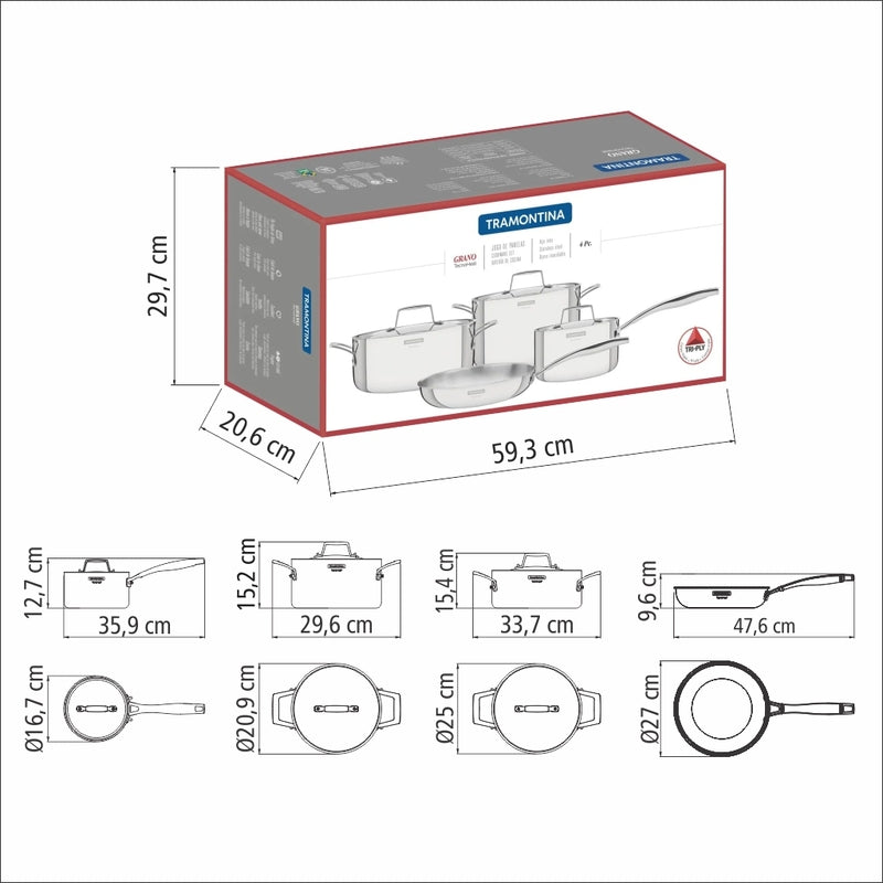 Tramontina Grano 9-piece stainless steel cookware set with tri-ply body