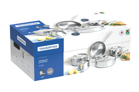 Tramontina Grano 9-piece stainless steel cookware set with tri-ply body