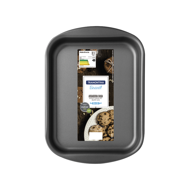 صينية تحميص مسطحة من ترامونتينا برازيل، 28 سم، 2 لتر، مصنوعة من الألومنيوم الجرافيتي، مع طلاء ستارفلون ماكس غير لاصق داخلي وخارجي، خالٍ من مادة PFOA