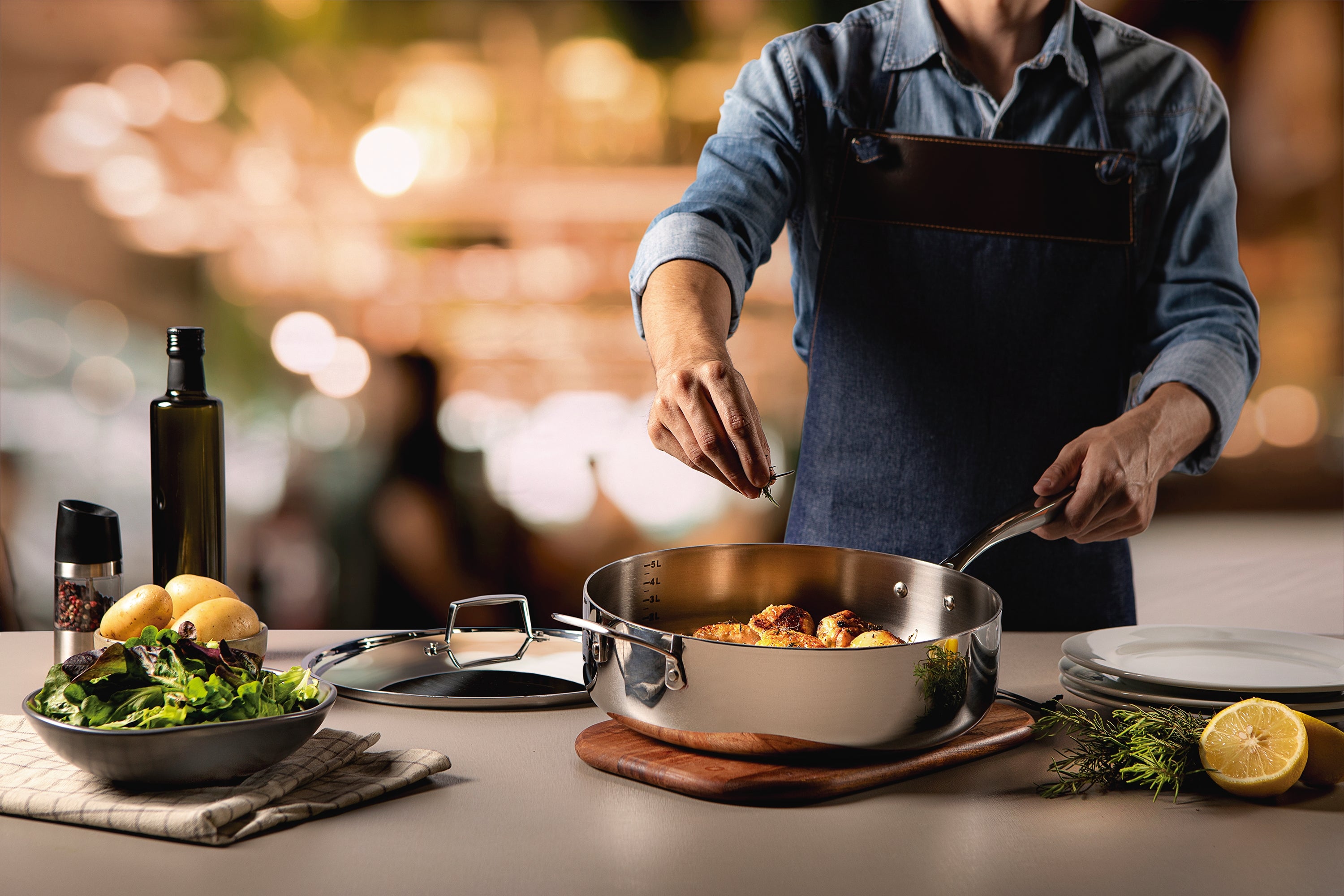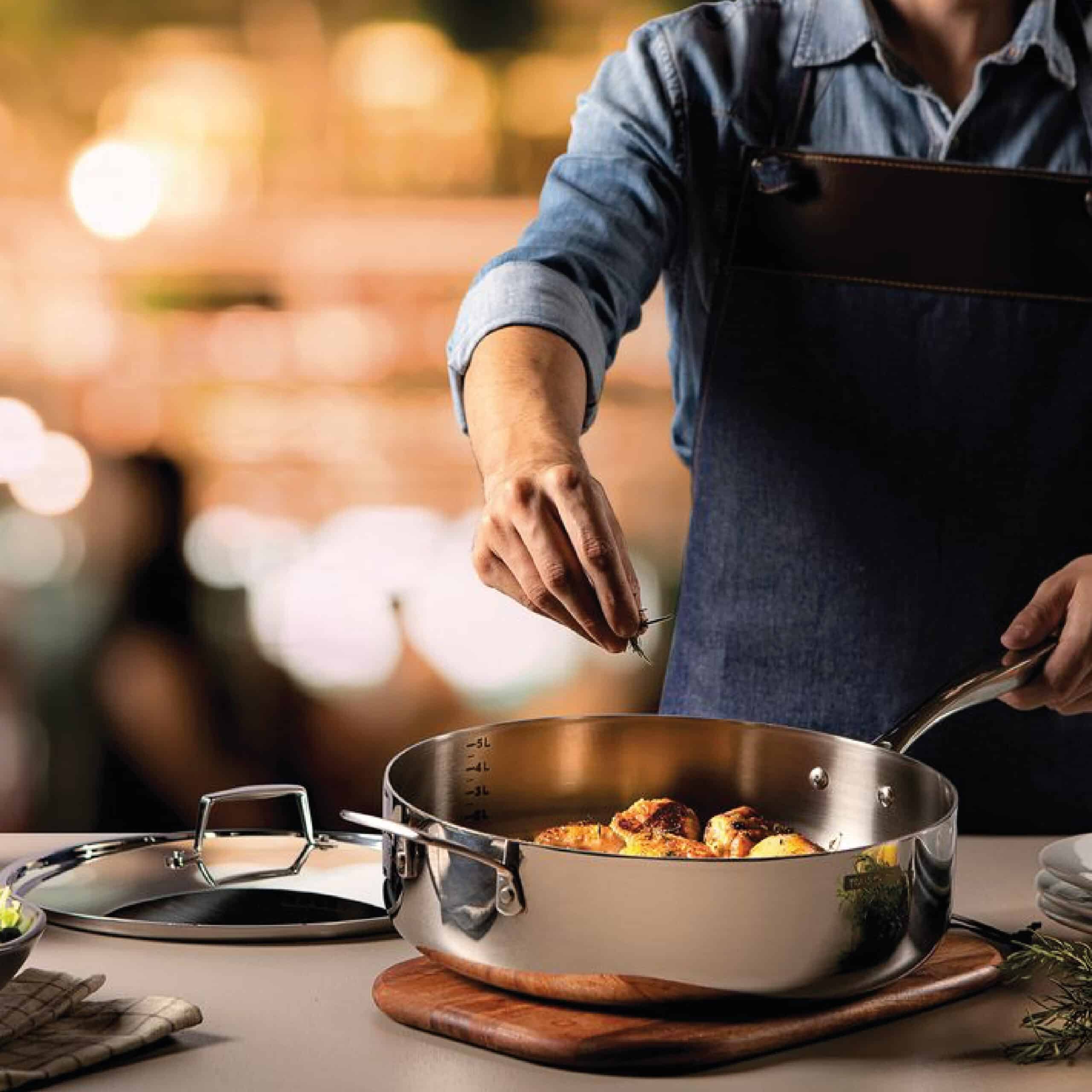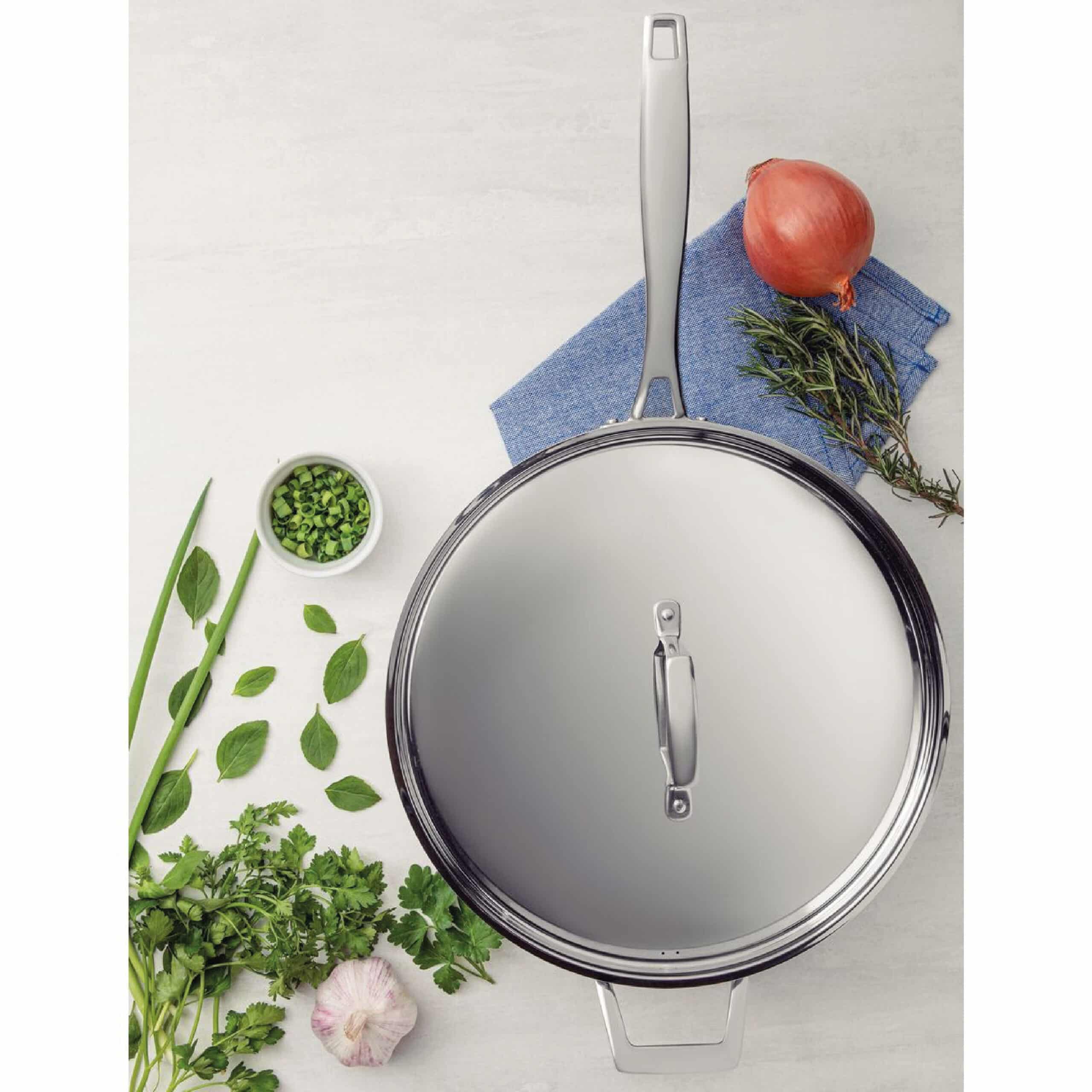 مقلاة جرانو 30 سم 5.6 لتر من الفولاذ المقاوم للصدأ مع هيكل ثلاثي الطبقات وغطاء ومقبض طويل