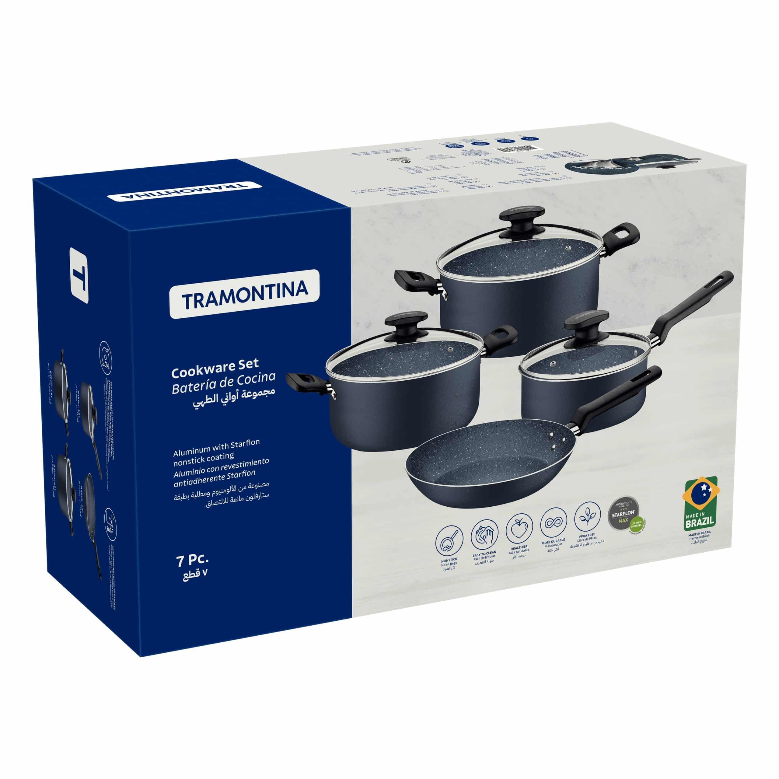 طقم أواني طهي ترامونتينا من الألومنيوم الأزرق، 7 قطع، مع طلاء ستارفلون ماكس غير اللاصق الداخلي والخارجي