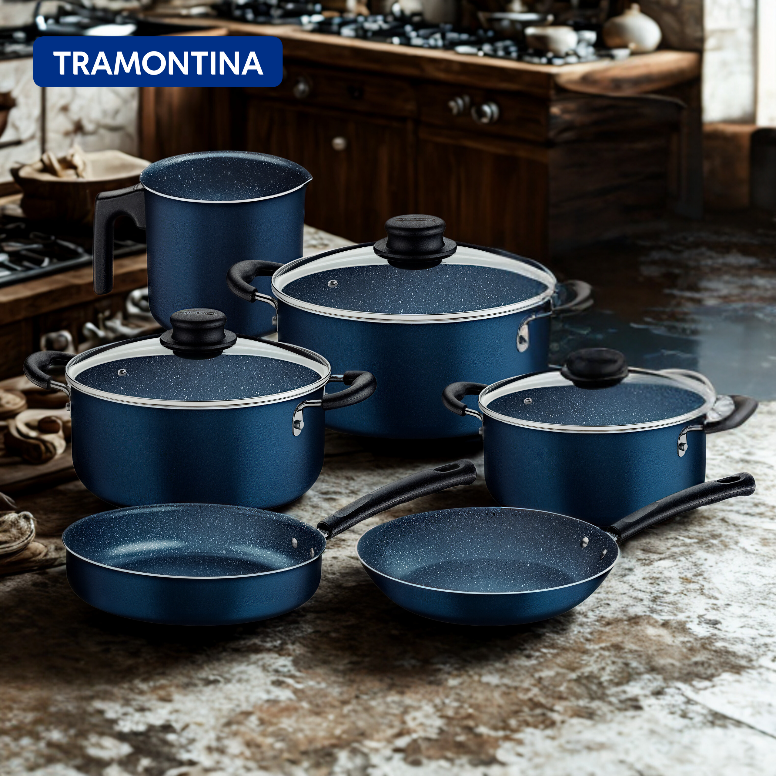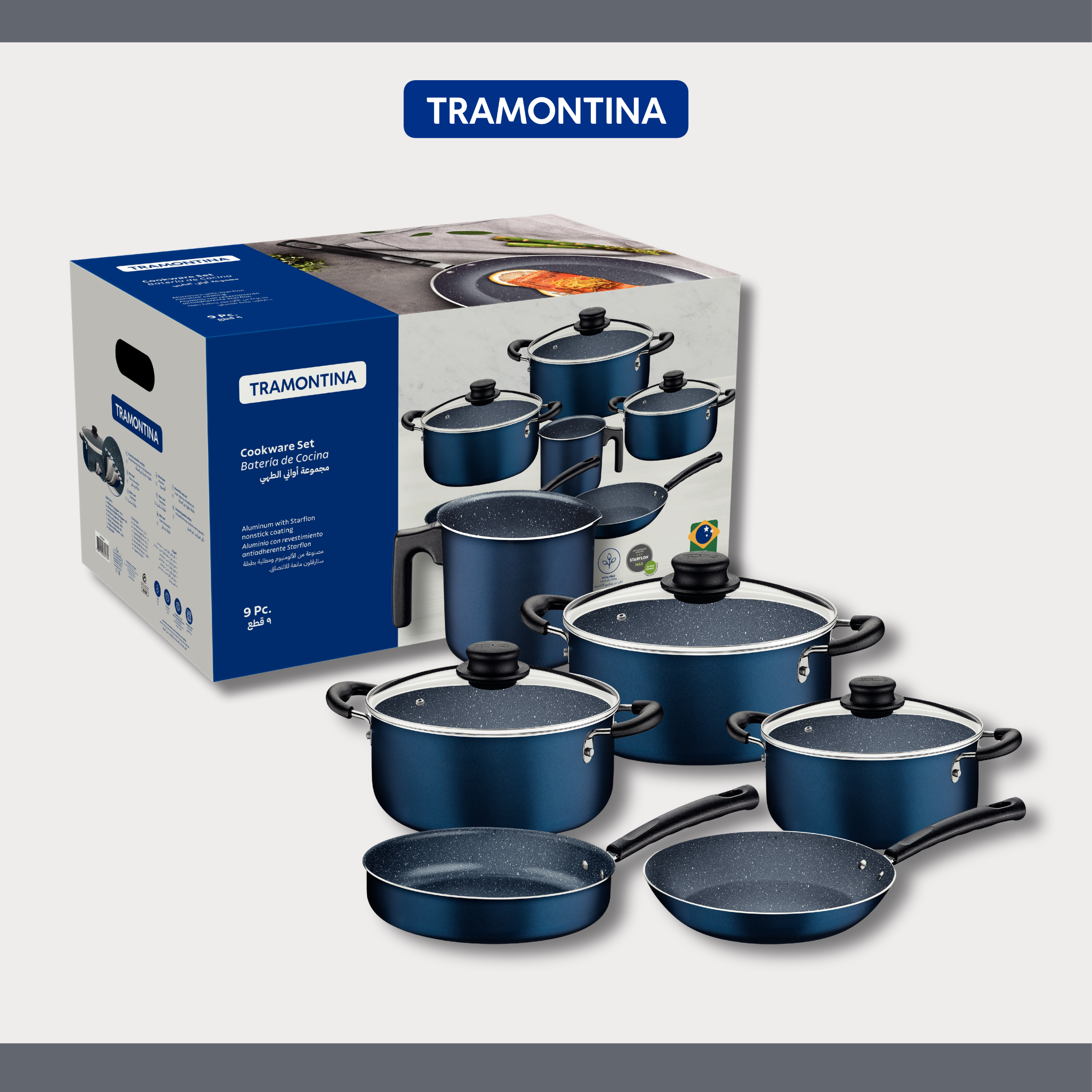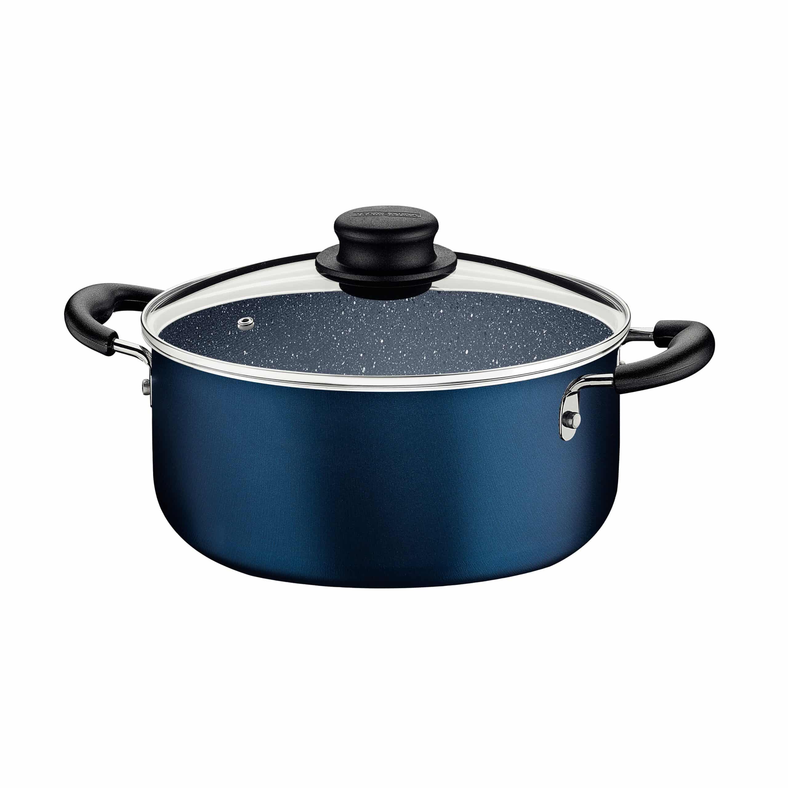 طقم أواني طهي ترامونتينا من الألومنيوم الأزرق، 9 قطع، مع طلاء ستارفلون ماكس غير اللاصق الداخلي والخارجي