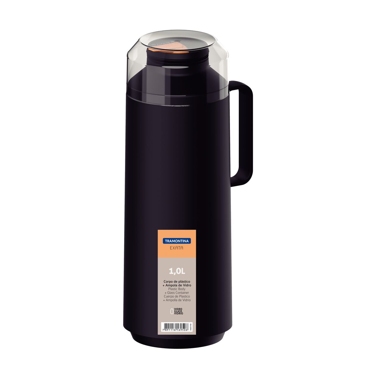 موزع مشروبات حراري بلاستيكي أسود من ترامونتينا إكساتا مع بطانة زجاجية سعة لتر واحد وغطاء بلاستيكي