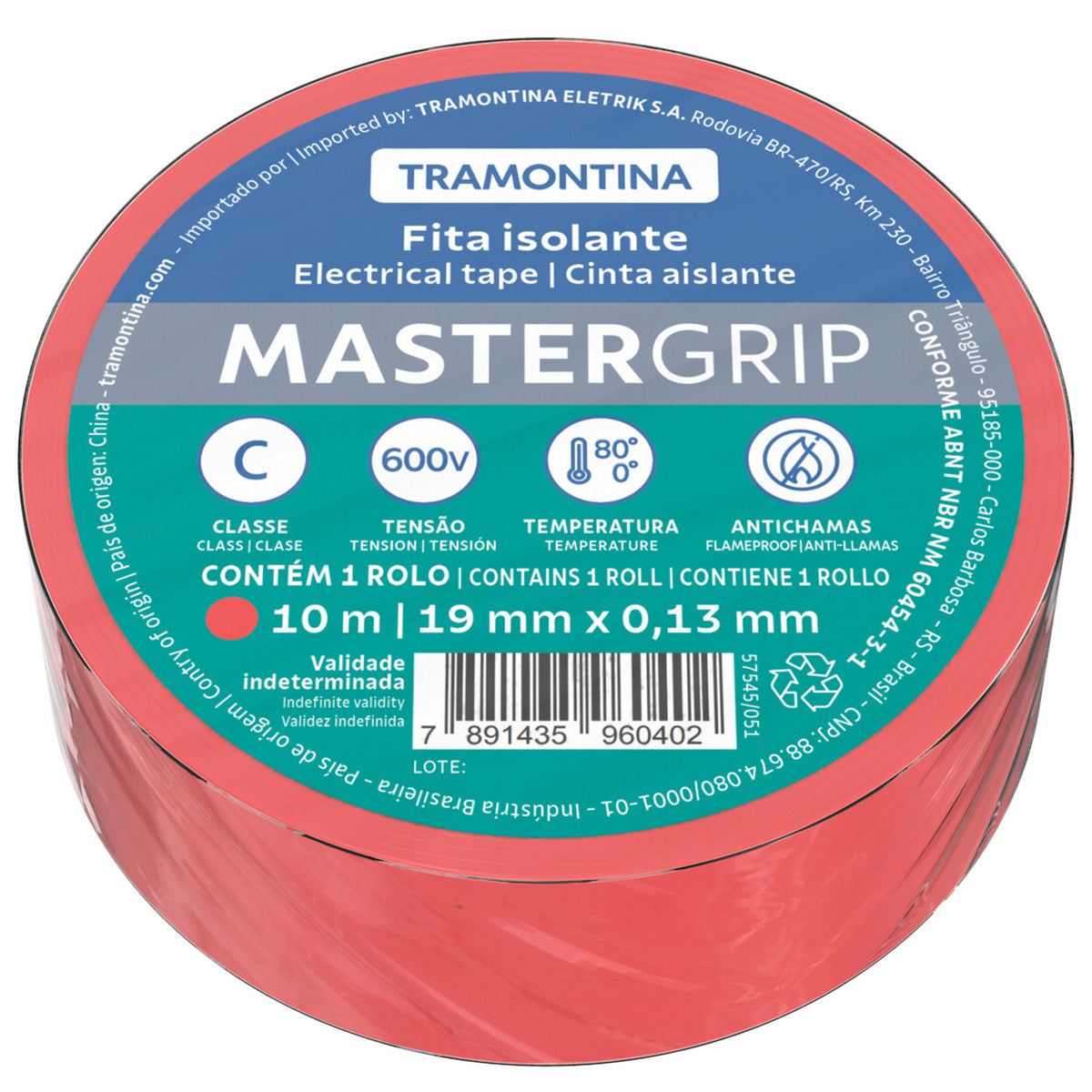 Tramontina's red electrical tape class C, 0.13x19 mm, 10 m not only provides high-quality, safe electrical connections, but also makes it easier to identify and mark electric cables. It is made of highly elastic and resistant flame-retardant material, offering perfect wire insulation fort preventing electric shocks. This tape is very easy to use, making it ideal for your electric connections!