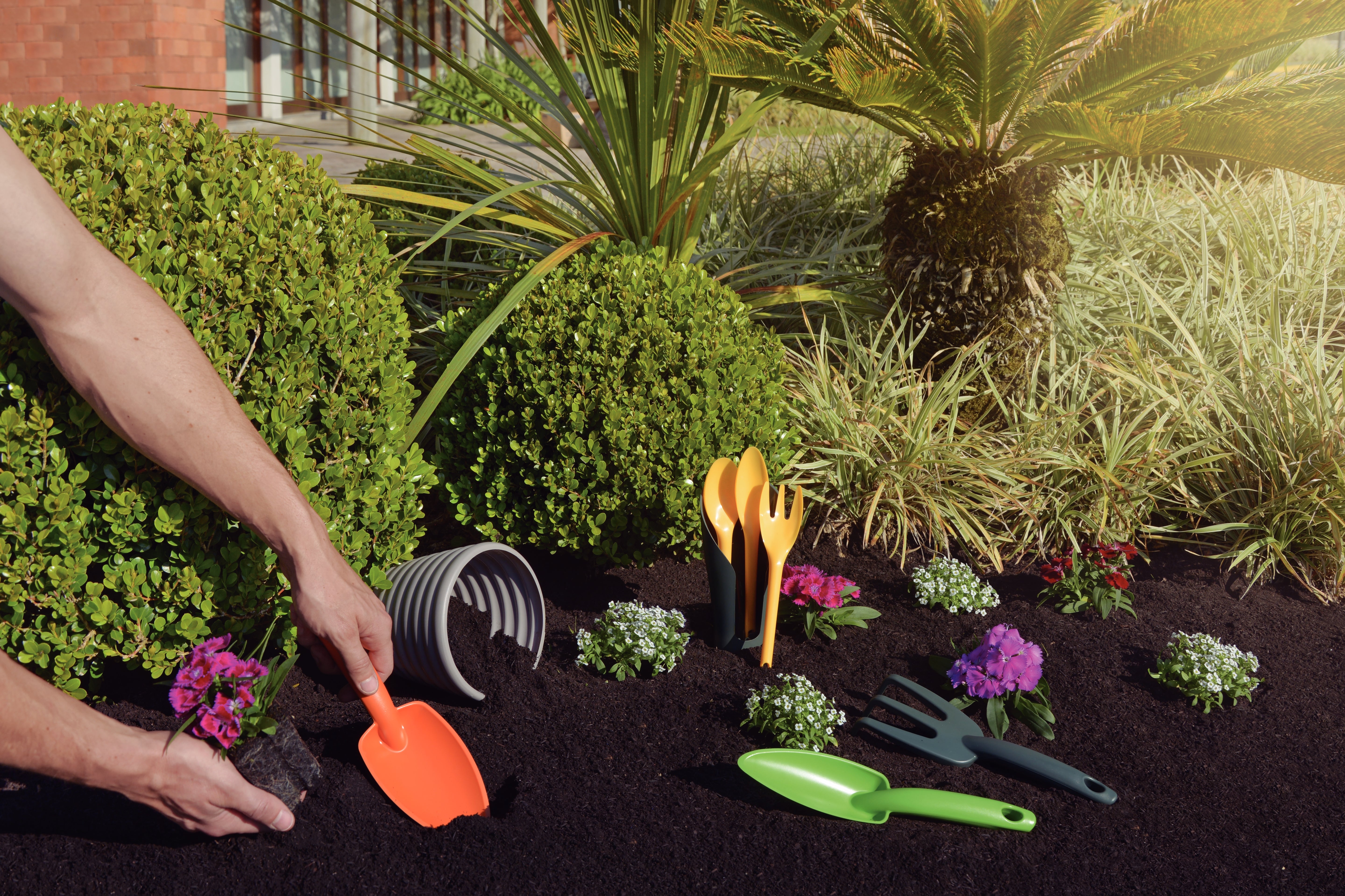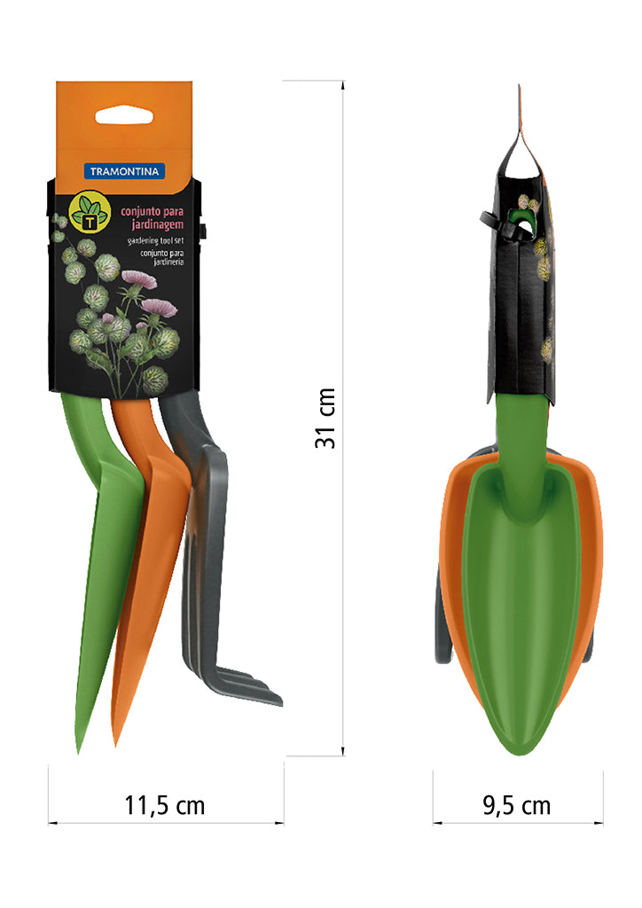 مجموعة أدوات الحديقة من ترامونتينا، مكونة من 3 قطع، مصنوعة من مادة البولي بروبيلين شديدة التحمل، متعددة الألوان، تتضمن مجرفة حديقة + مجرفة زراعة + أداة حرث