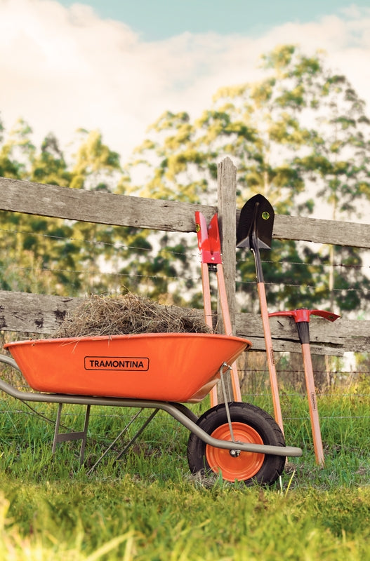 عربة يدوية ترامونتينا مع دلو معدني برتقالي عميق للغاية سعة 80 لترًا ومقبض معدني وإطار هوائي تم طلبه مرة أخرى وسيتم شحنه بمجرد عودته إلى المخزون.