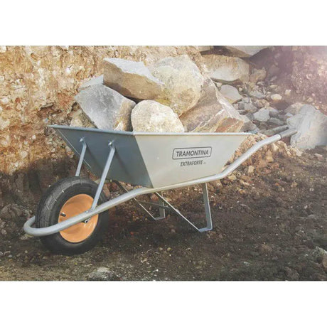عربة يدوية ترامونتينا إكسترافورتي مع دلو معدني رمادي عالي التحمل سعة 65 لترًا ومقبض معدني وإطار صلب