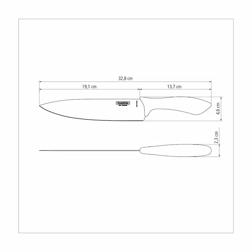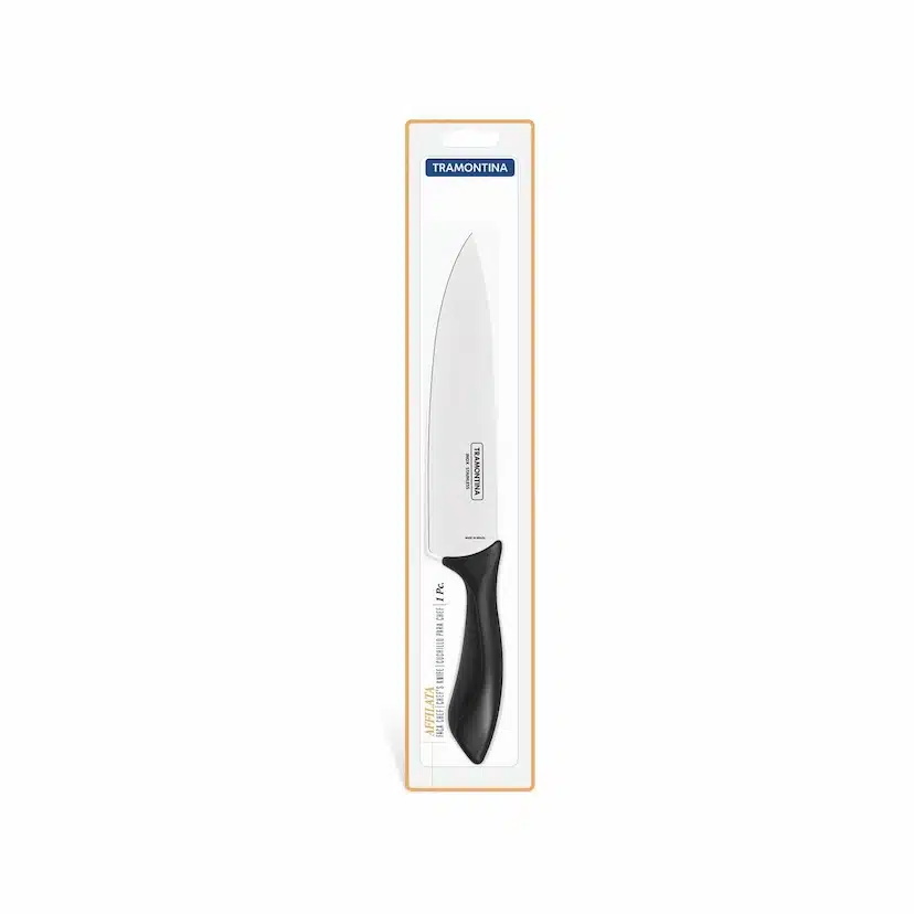 سكين الطاهي ترامونتينا أفيلاتا مقاس 8 بوصات بشفرة من الفولاذ المقاوم للصدأ ومقبض من البولي بروبيلين الأسود