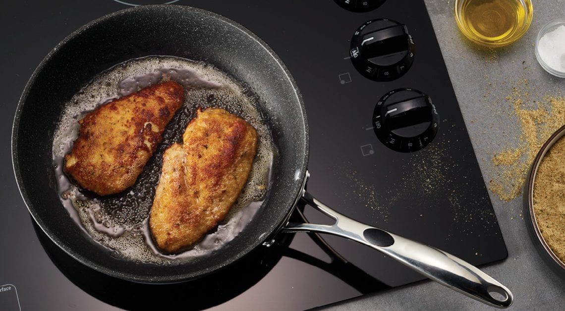 - Use the right pan. Chicken breasts don’t have a lot of fat. That means they either need a good amount of oil or the right pan to release their prone-to-stick surface. When searing chicken breasts, go with a sturdy nonstick that conducts heat well. The new Black Stone Aluminum Fry Pans are a great option.