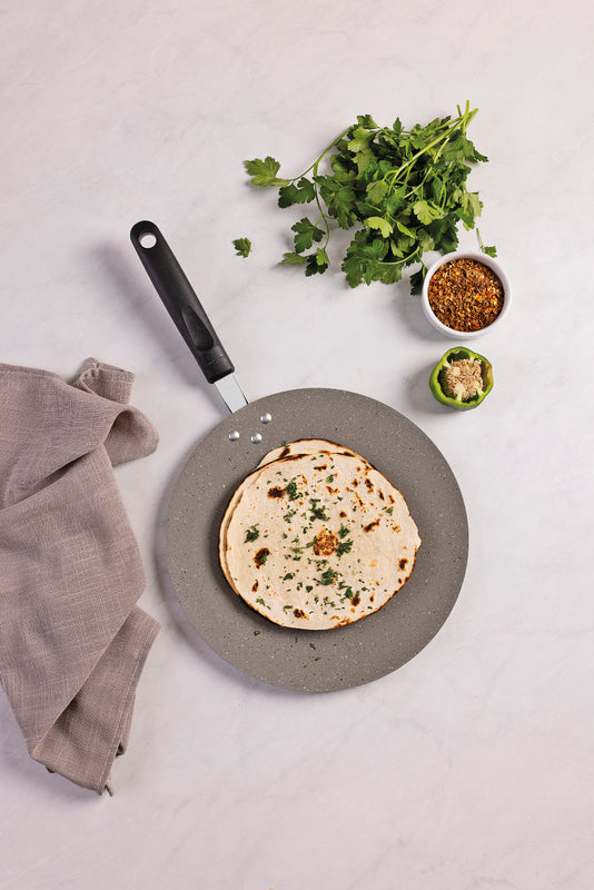 The Tramontina Napoli black aluminum flat frying pan with interior and exterior Starflon Max nonstick coating, measuring 28 centimeters in diameter with 2-liter capacity, is an excellent ally for preparing your daily meals. With an aluminum body and interior and exterior nonstick coating, it offers fast and even heating, keeps food from sticking and is easy to clean. The heat-resistant Bakelite handle ensures safe handling, even at high temperatures. A practical, durable and indispensable item in your kitchen.