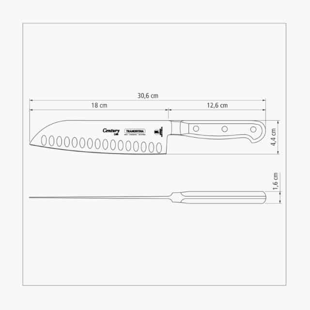 Tramontina Century 7 Inches Santoku Knife with Stainless Steel Blade and Black Polycarbonate Handle
