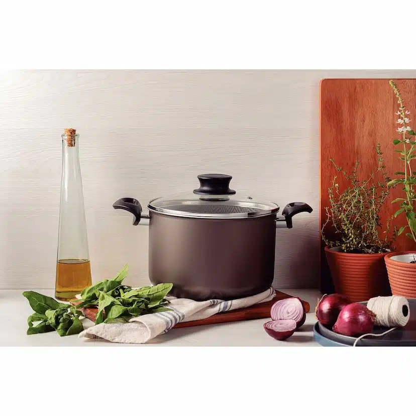 Bring the Tramontina Paris 13-piece lead-colored aluminum cookware set with interior and exterior Starflon Max nonstick coating into your daily life and make your recipe preparation easier. Designed with aluminum bodies with interior and exterior Starflon Max nonstick coating, the pieces cook quickly and evenly without food sticking to its surface. The set comes with tempered-glass lids with steam vents and stainless-steel rims, nylon utensils that can be used at temperatures of up to 180 °C (356 °F) and knives with stainless-steel blades and polypropylene handles. In addition to all these features, everything in the kit is dishwasher-safe and the handles and knobs are made of heat-resistant material and do not get hot!