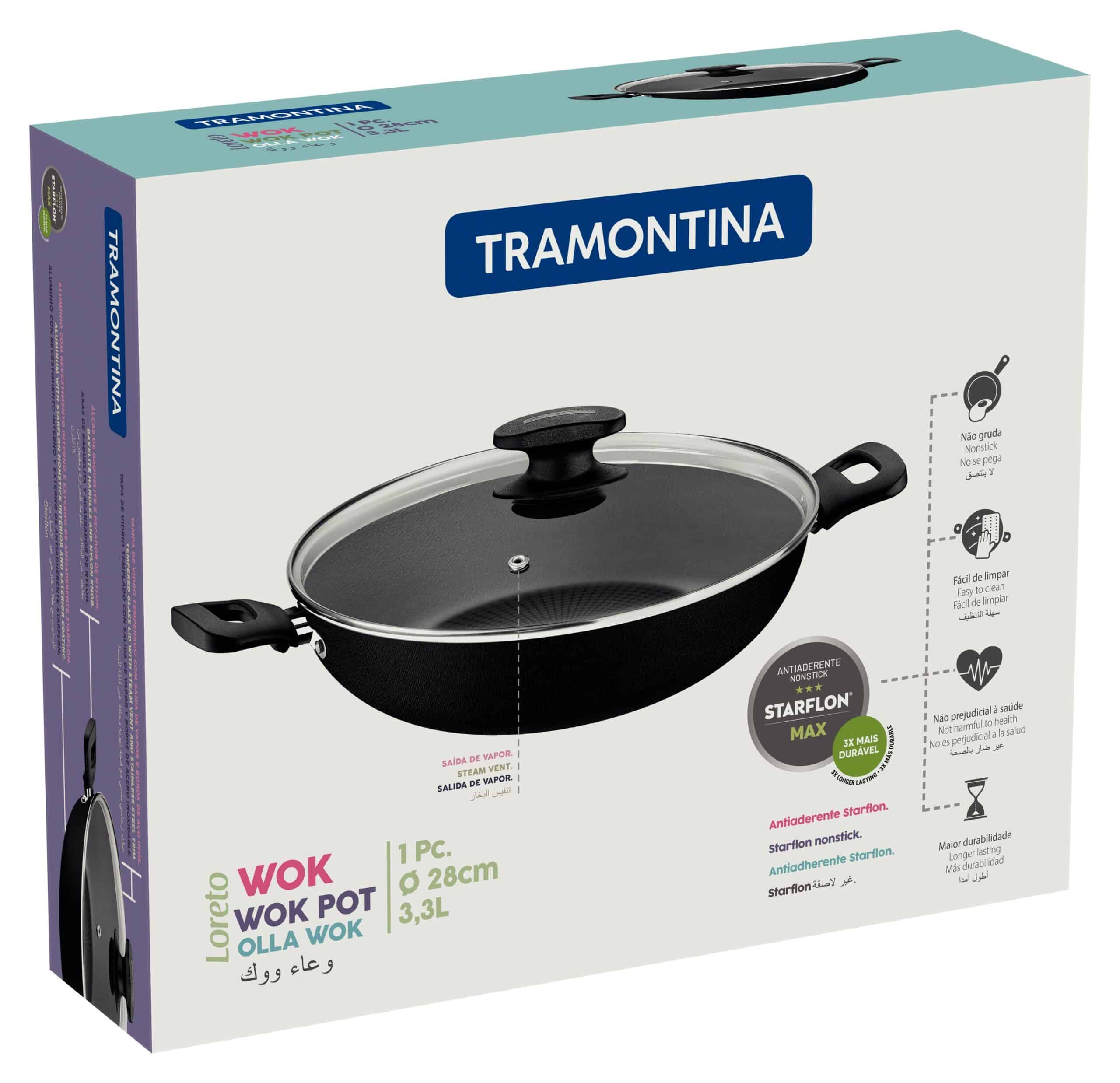 Tramontina Loreto 28cm 33L Black Wok Pot with Interior and Exterior Starflon Max PFOA Free Nonstick Coating