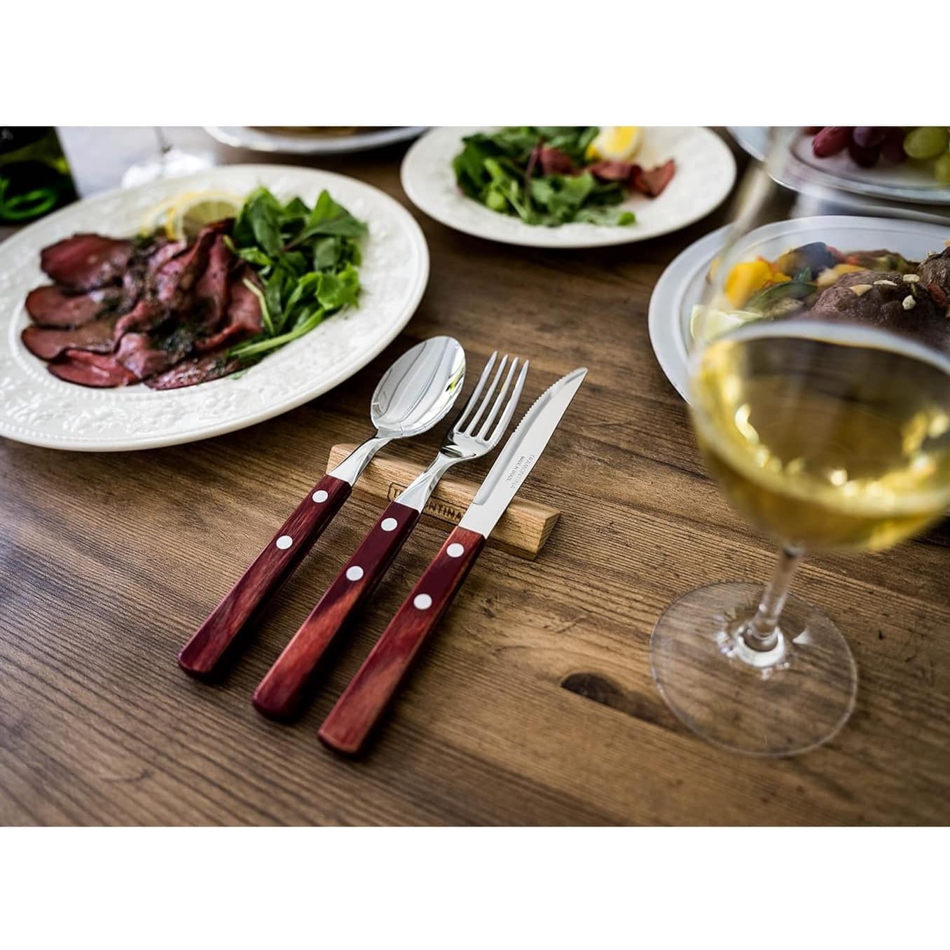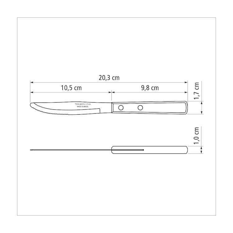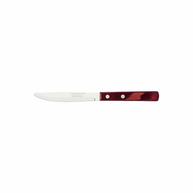 Tramontina 4-inch table knife with stainless-steel blade and treated red Polywood wood handle is perfect for your daily meals. Its highly resistant blade is made in stainless steel and has a powerful and durable cutting edge. It has a Polywood treated wood handle and provides a comfortable grip, making your table charming and high quality with its rustic style. Get yours and make your table complete!