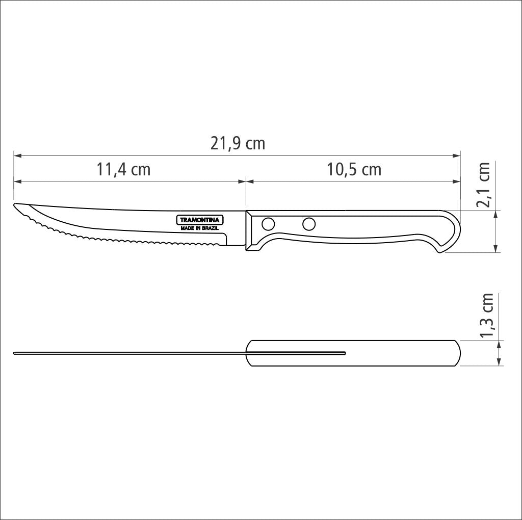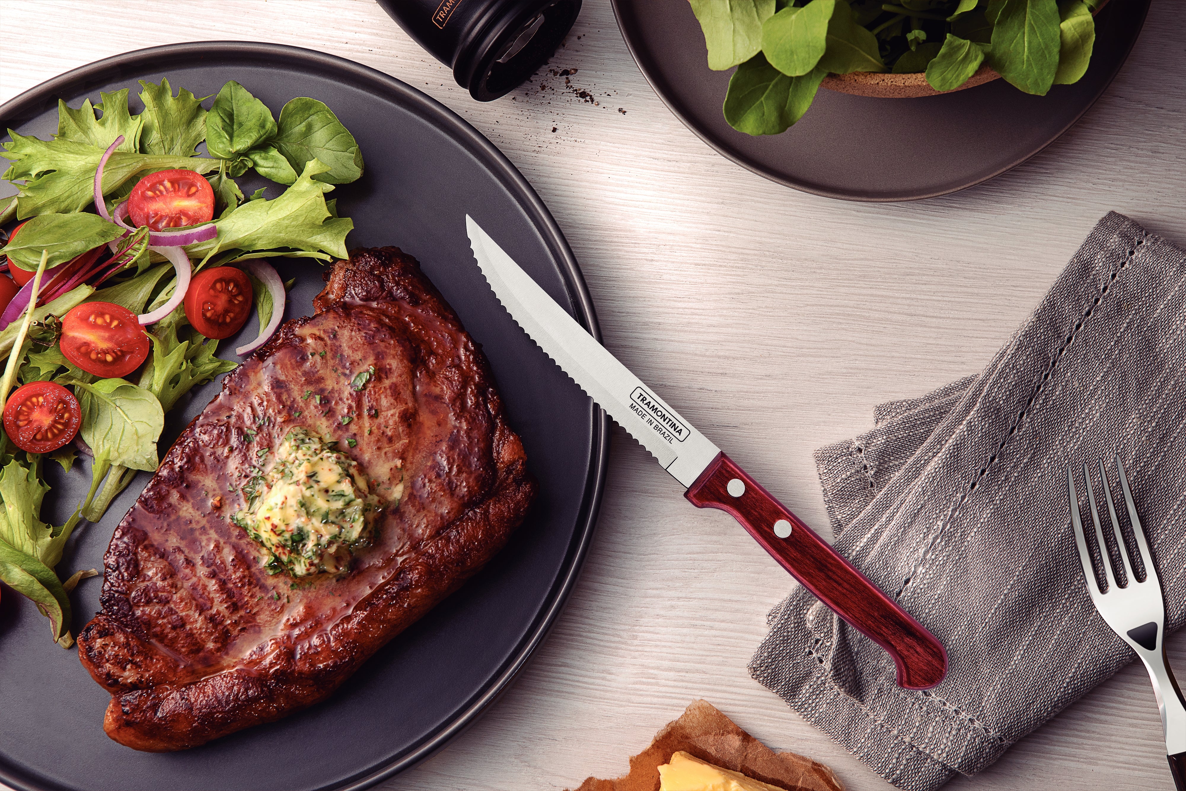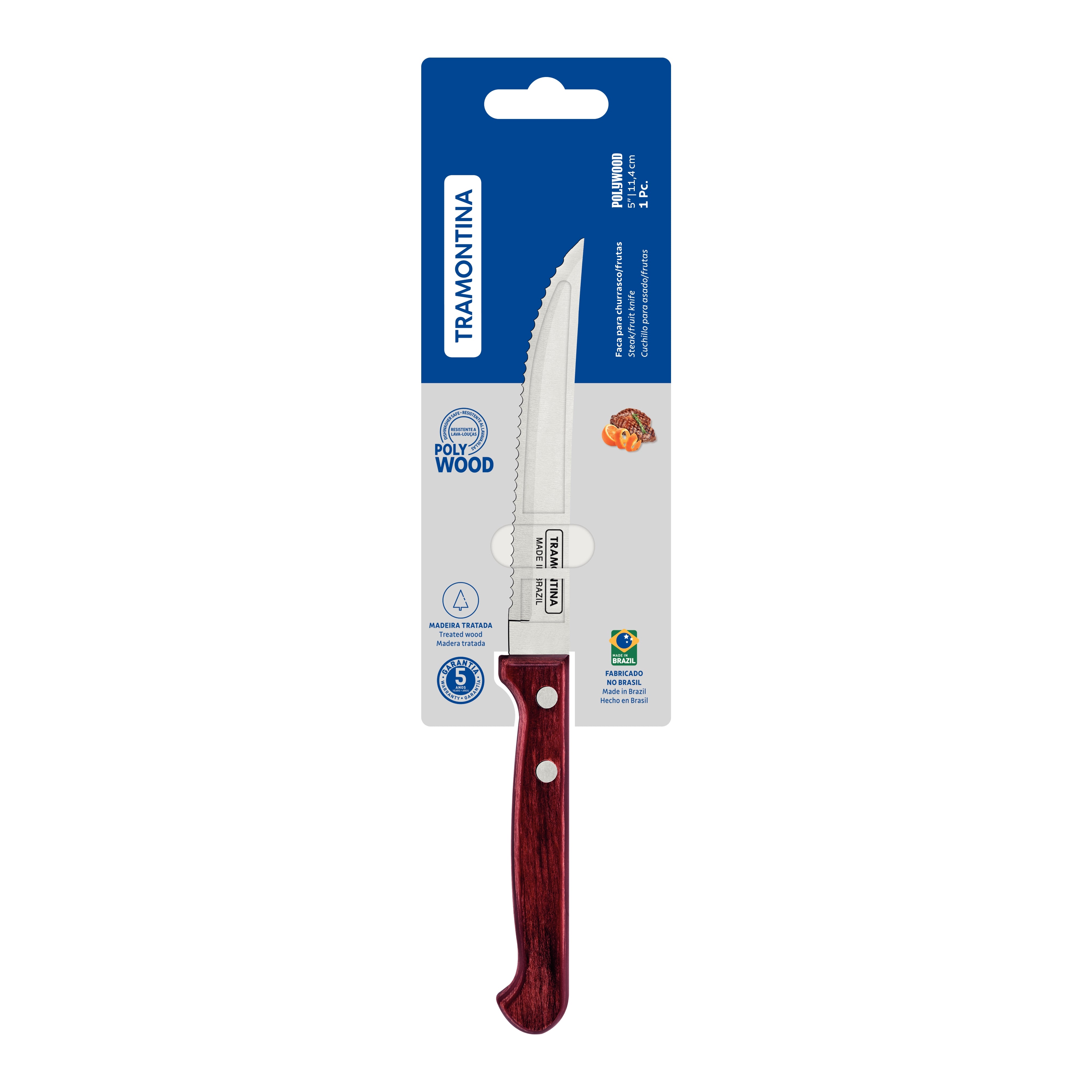 If you want to savor a delicious cut of grilled beef with even more pleasure, the Tramontina Polywood steak and fruit knife is the perfect choice. It is the ideal mate for the traditional Sunday barbecue with family and friends. Its blade is produced in stainless steel, having a shape and thickness that ensure resistance and durability, while the Polywood treated handle provides resistance to impacts and high temperatures, as well as beauty and comfort while handling.With this knife, you can transform ordinary moments into special occasions, making them even more delightful and memorable. So, do not lose the opportunity to try the Tramontina Polywood steak and fruit knife and increase the level of your gastronomic experience!