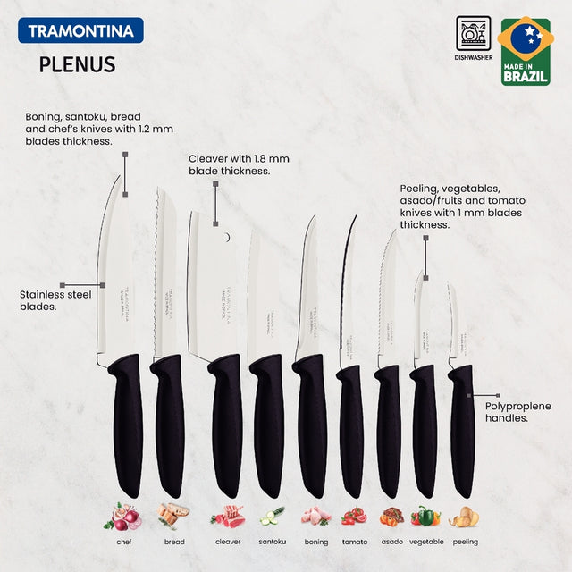 Tramontina Plenus 9 Pieces Knife Set with Stainless Steel Blade and Black Polypropylene Handle