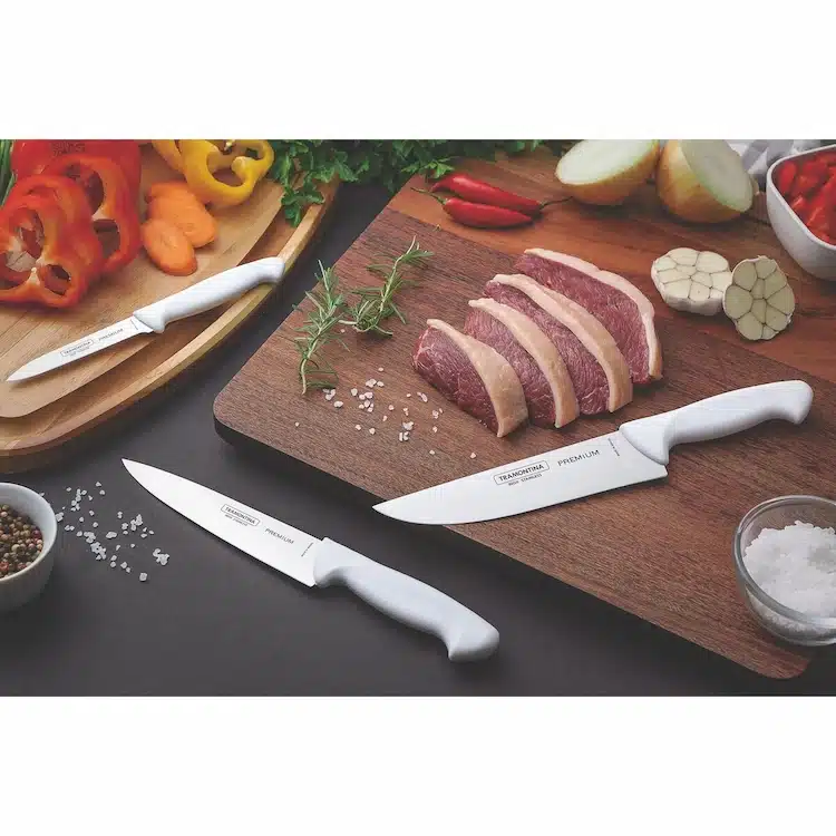 Tramontina Premium 3 Pieces Knife Set with Stainless Steel Blade and White Polypropylene Handle