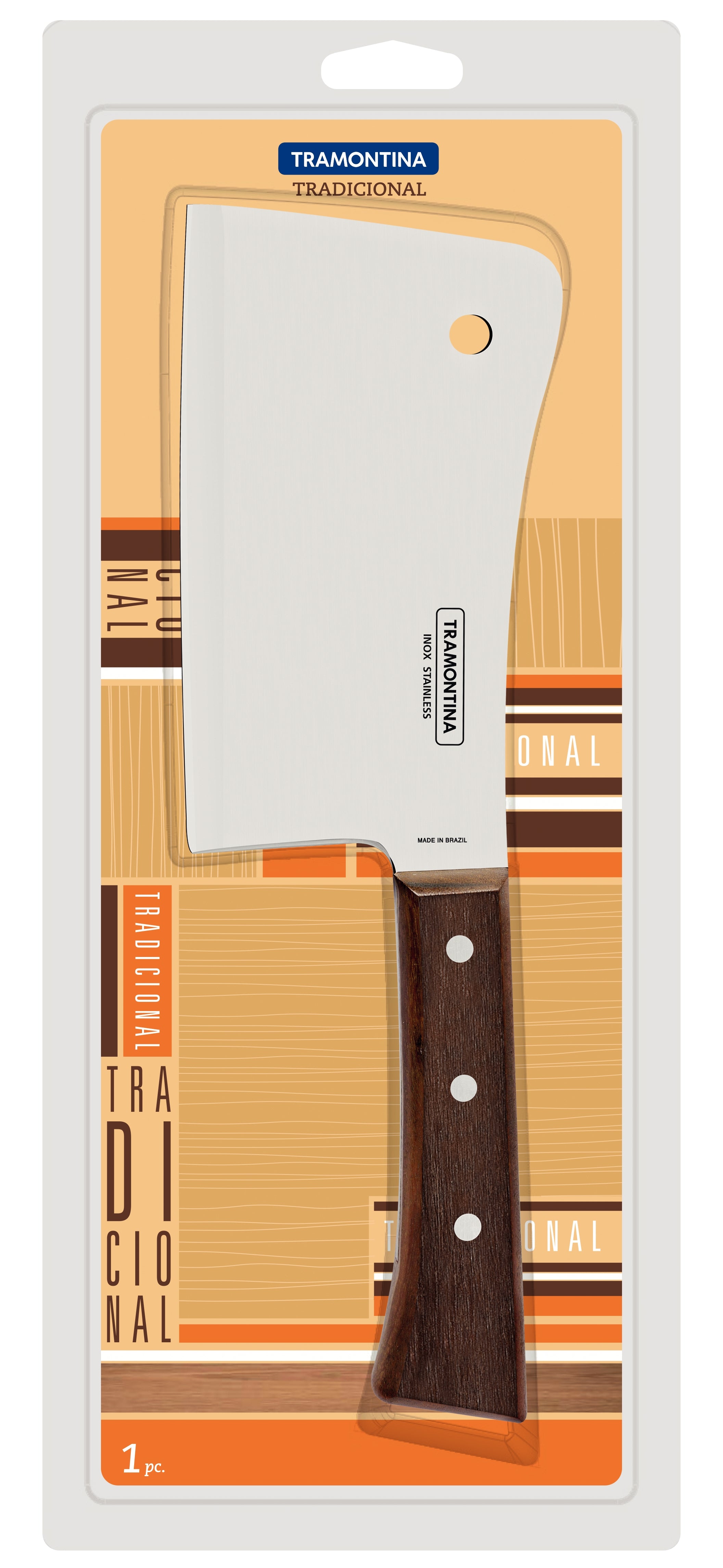 For more efficiency when separating bones from meat, you need a strong, high-quality knife, right? The Tramontina Tradicional 6-inch cleaver with stainless-steel blade and natural wood handle combines both features. Made with a natural wood handle with aluminum rivets and stainless-steel blade, the cleaver offers greater strength and durability of its cutting edge with a special, rustic style for your kitchen.