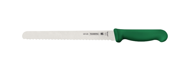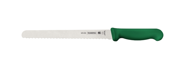 Tramontina Professional 10 Inches Serrated Slicer Knife for Cold Cuts with Stainless Steel Blade and Green Polypropylene Handle with Antimicrobial Protection
