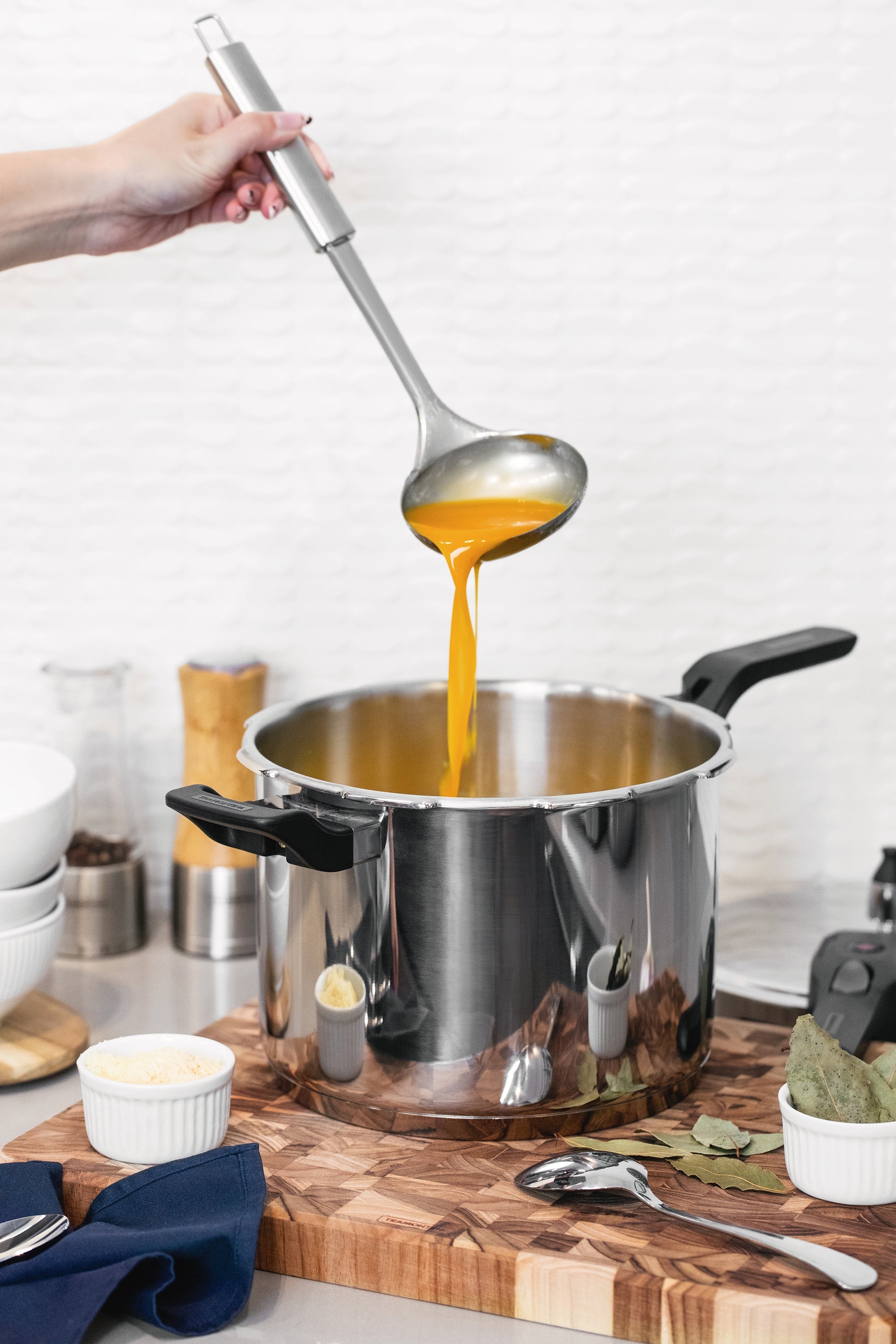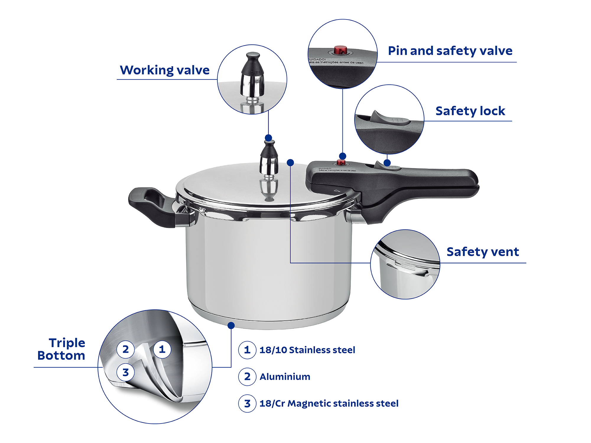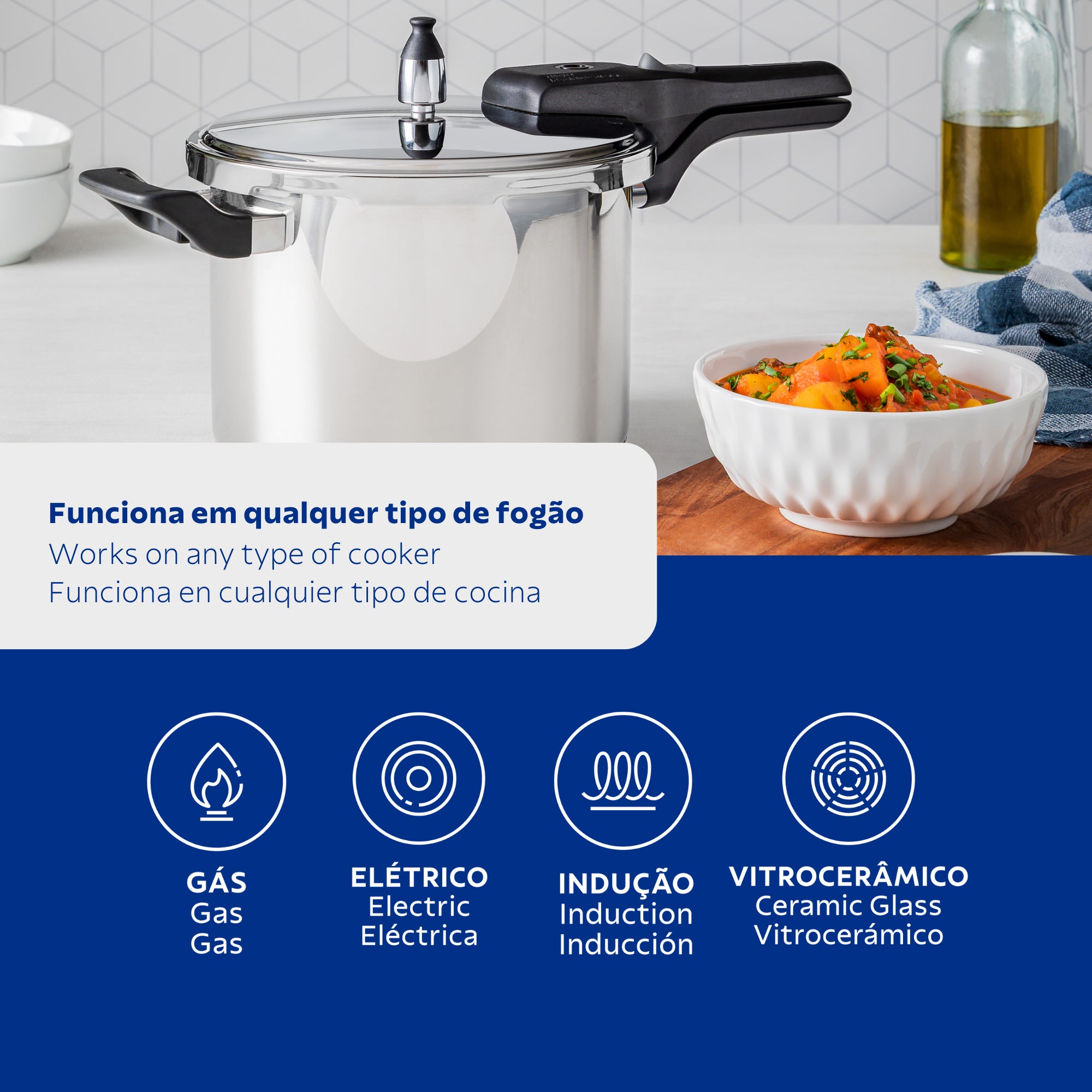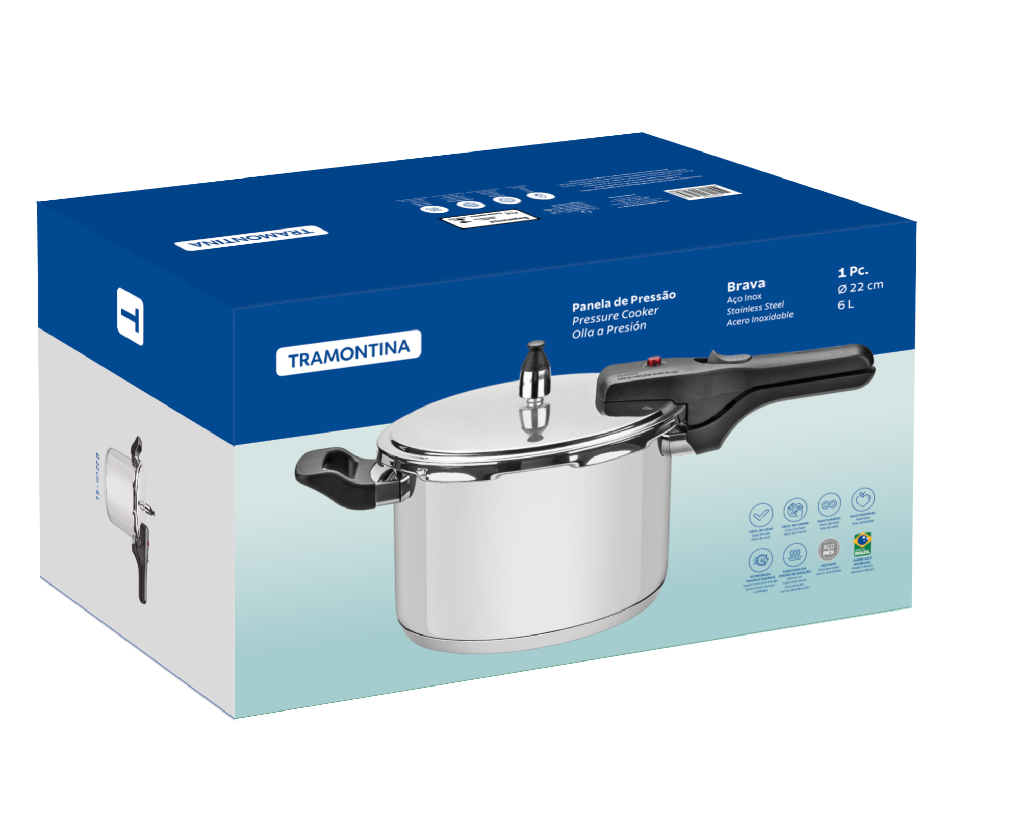 Beans, lentils, or chickpeas, all these food items are much easier to be prepared with the Tramontina Brava pressure cooker in stainless steel with triple bottom 22 cm 6 liters. With it, you will ensure much more convenience and versatility when cooking, as it can be used in gas, electric, vitroceramic, or induction stoves. It is made in stainless steel with a triple bottom and for greater safety, it has heat resistant handles, in addition to a decompression system and five safety devices. Grab yours now and streamline your kitchen routine!