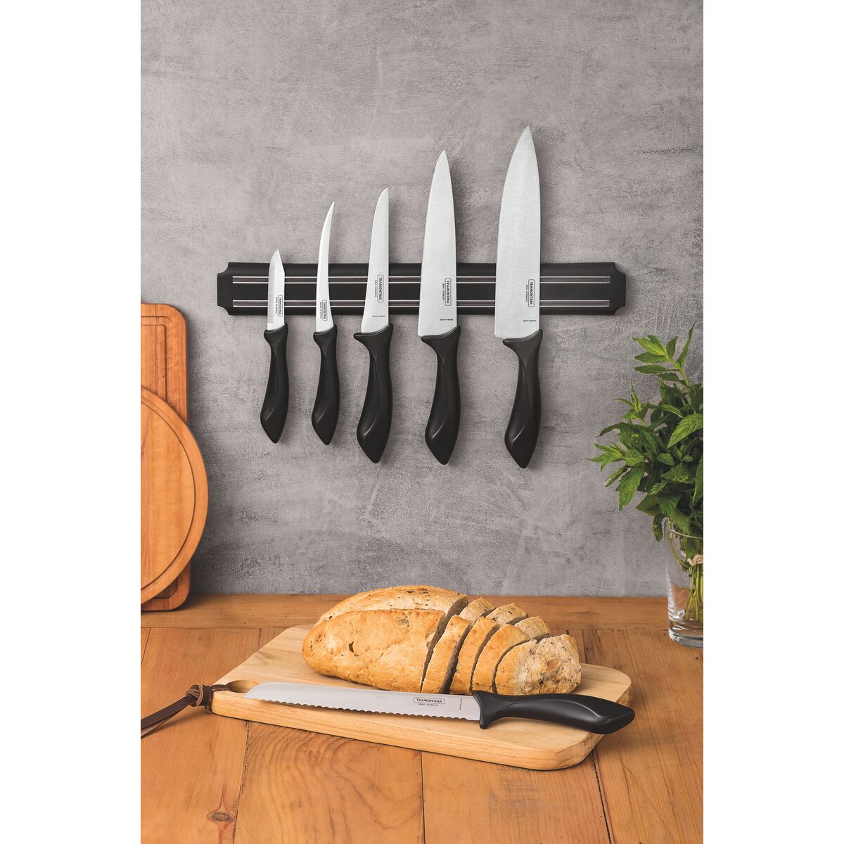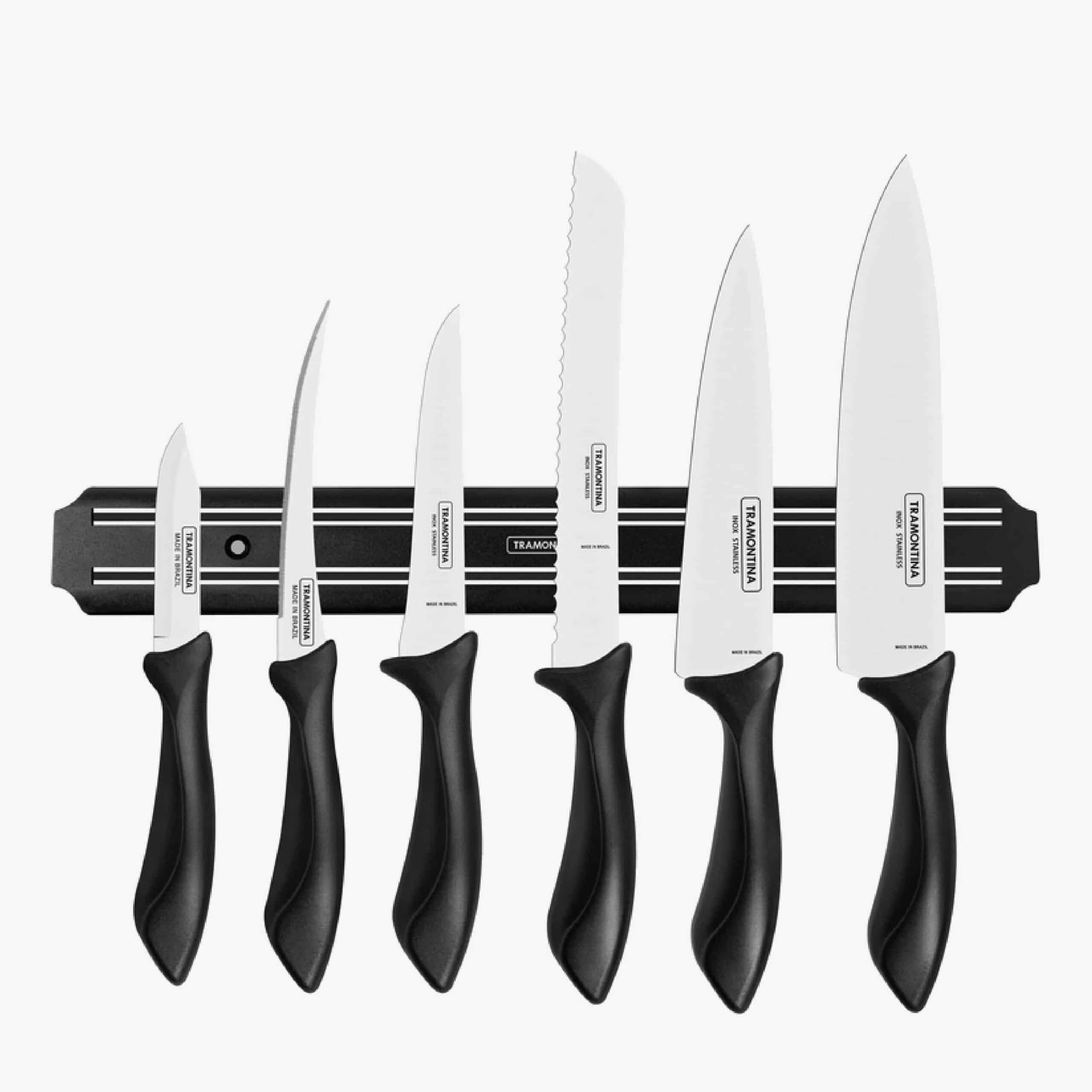 Tramontina Affilata 7 Pieces Magnetic Rack and Knife Set with Stainless Steel Blade and Black Polypropylene Handle
