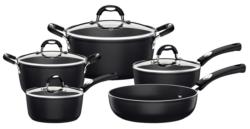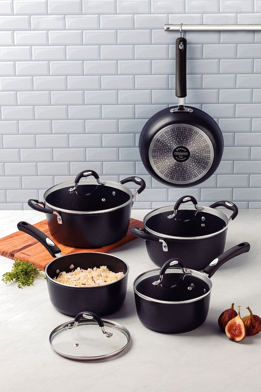 Monaco Induction 9 Pieces Black Aluminum Cookware Set