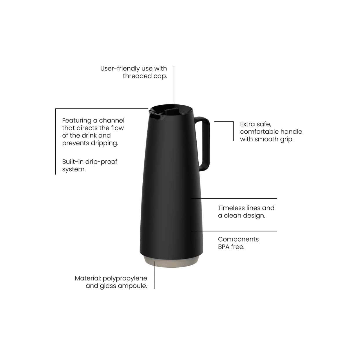 Tramontina Exata Black Polypropylene Thermal Pot with 1 L Glass Liner