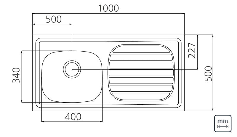 Stainless Steel Sink 100x50 cm, 1LB
