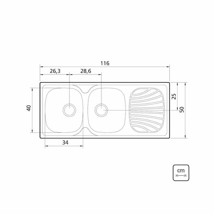 AISI 304 stainless steel sink - thickness 0,6 mm with satin finished.