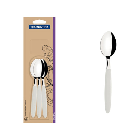 Tramontina Ipanema stainless steel teaspoon set with white polypropylene handles, 3 pcs