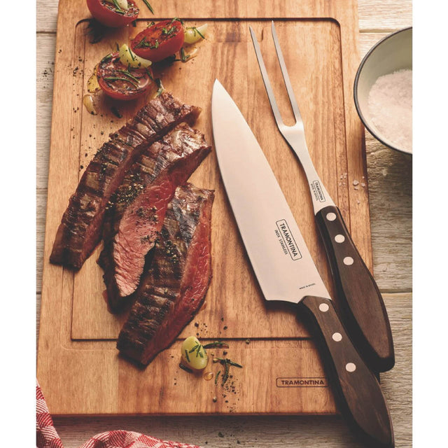 Tramontina stainless steel carving set with brown Polywood handles, 2pc set