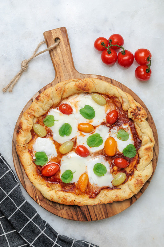 FSC Tramontina Round Board in Teak Wood with Handle 40x28 cm - Wood is backordered and will ship as soon as it is back in stock.