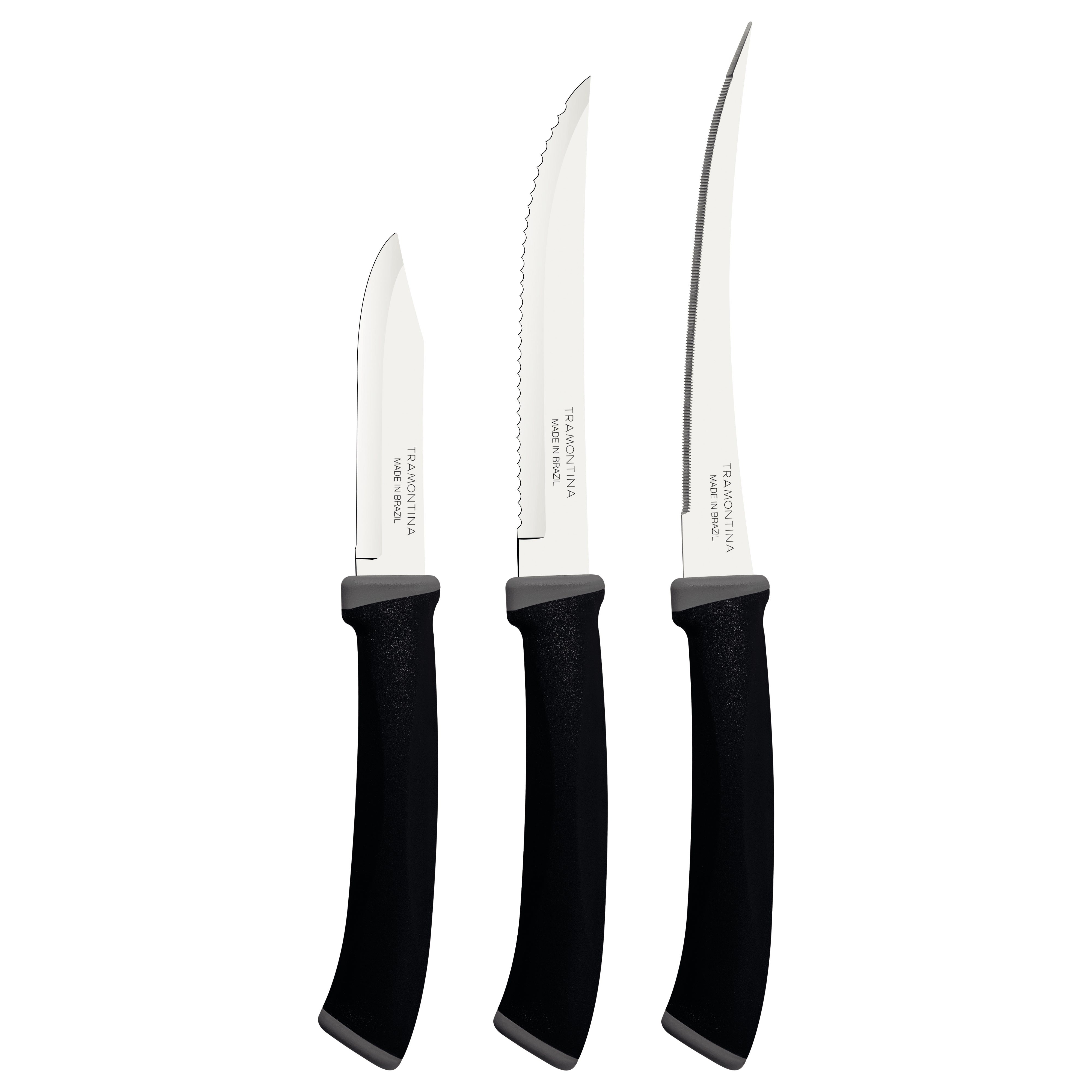 Tramontina Felice 3-Piece Knife Set with Stainless-Steel Blades and Black Polypropylene Handles