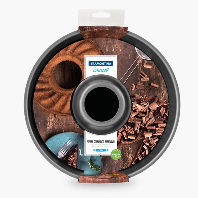 Cakes and pies will get a new look with the Tramontina Brasil aluminum pan with Starflon Max nonstick coating and removable bottom graphite, measuring 26 centimeters in diameter with 3.3-liter capacity. Practical and very easy to use, it has a removable bottom that facilitates maneuvering. In graphite color, it is made of aluminum with interior and exterior Starflon Max nonstick coating, quality materials that let recipes bake quickly and evenly while keeping food from sticking to its coating, making it not harmful to the health and offering longer durability. Versatile, it is dishwasher safe. An indispensable piece for your kitchen!